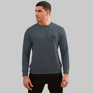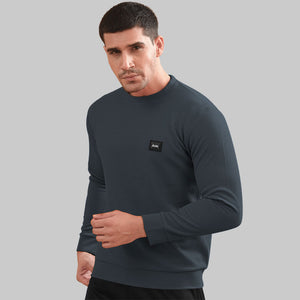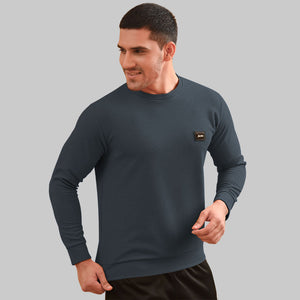 DARK GRAY - WAFFLE SWEATSHIRT CREW NECK TOP